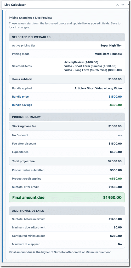- Apply pricing rules consistently with a live calculator.