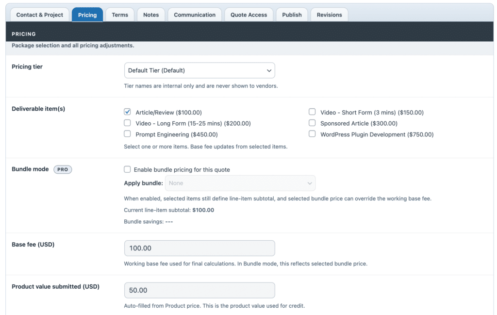 Professional quote, bid, and pricing proposal workflows for creators,